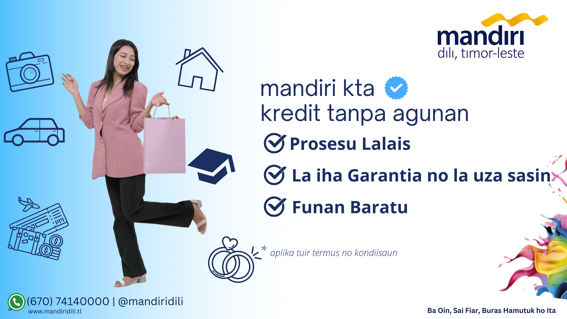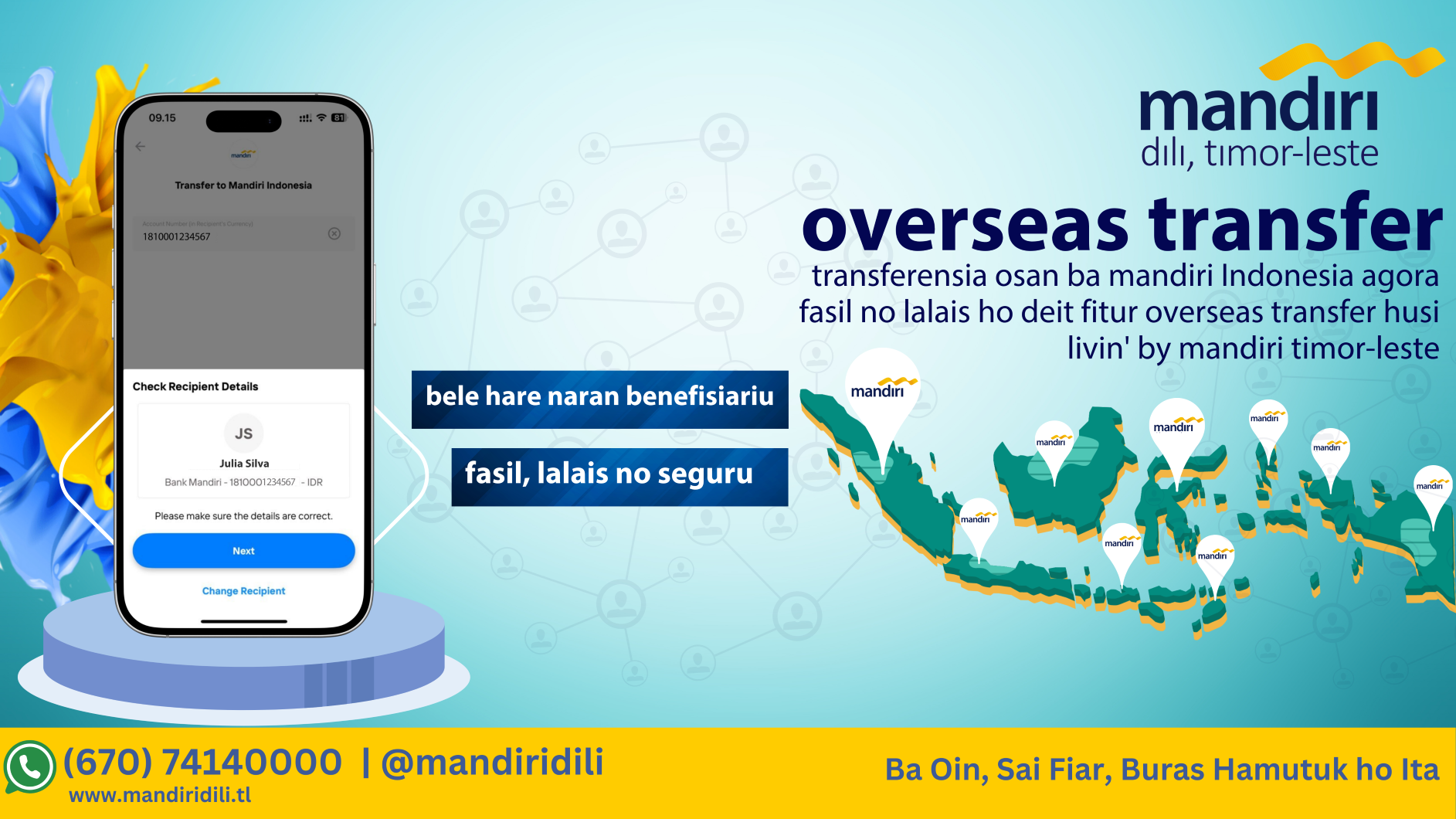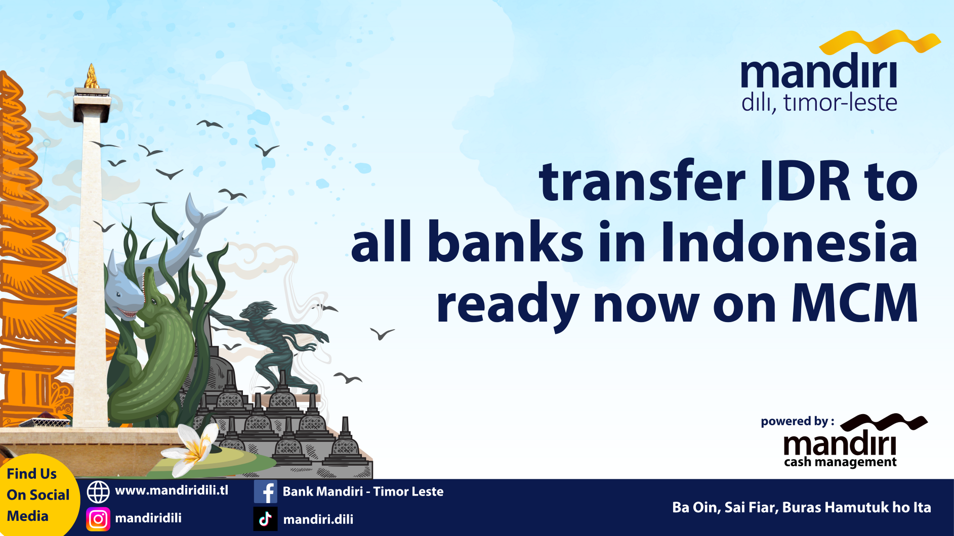 Bank Mandiri Dili was established in 2003, as an overseas branch of PT Bank Mandiri (Persero) Tbk. For more than 22 years Mandiri Dili has been providing financial products and services to over 40,000 individual and business customers in Timor-Leste.